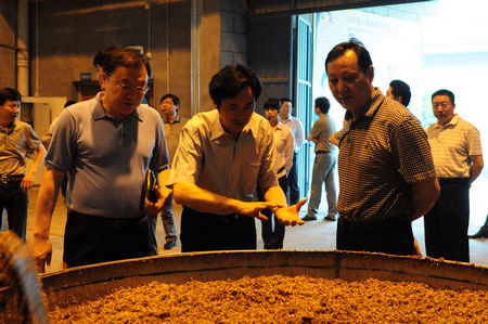 6月15日,黑龍江省政府研究室副主任董偉俊、黑龍江省食品協(xié)會(huì)秘書長車有春一行在湖北省政府研究室產(chǎn)業(yè)處處長韓明山、宜昌市政府研究室副主任覃世斌等的陪同下,到枝江酒業(yè)參觀考察。枝江酒業(yè)董事長蔣紅星、常務(wù)副總經(jīng)理譚崇堯、副總經(jīng)理亓新明對來訪客人給予了熱情接待。