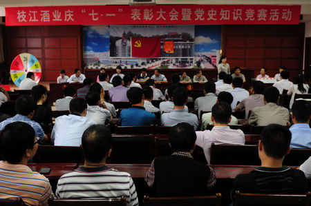 隨后,公司黨委還舉辦了黨的基本理論知識競賽。經過激烈角逐,公司經營黨支部獲得本次比賽的一等獎,玖源公司黨支部獲得二等獎,行管黨支部、生產黨支部、江口老廠黨支部獲優勝獎。