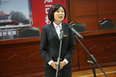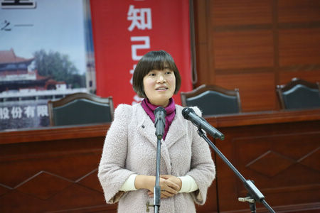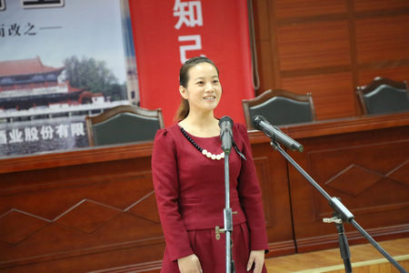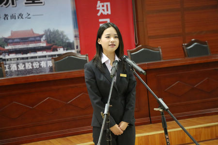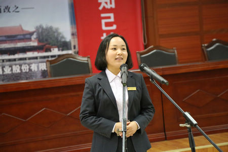 勾儲二車間的王春梅演講《我愿做枝江酒業的一塊磚》