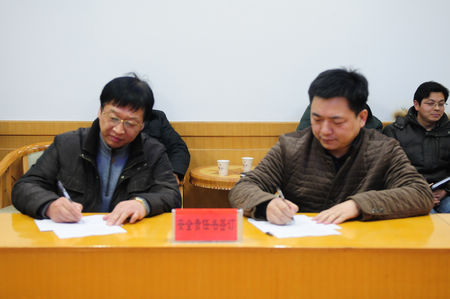 1月28日上午,枝江酒業2015年度“安全生產”和“社會管理綜合治理”兩個目標管理責任書簽訂儀式在二樓多功能廳舉行。公司高管、中層以上管理干部參加了會議。會議由公司常務副總經理譚崇堯主持。