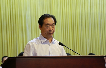 中國輕工業(yè)聯(lián)合會科技環(huán)保部主任于學(xué)軍為枝江市授牌