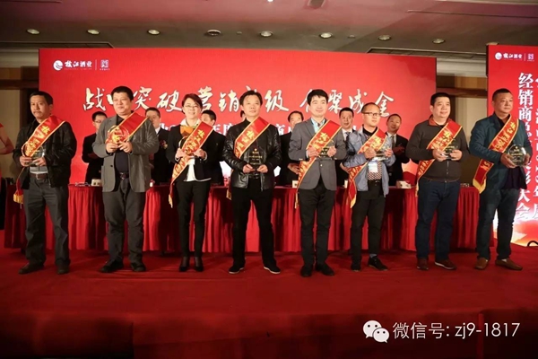會上授予陽新縣興國鎮宏財副食批發部劉志剛等4名經銷商“突出貢獻獎”;授予邯鄲市萬全糖酒有限公司劉海永等4名經銷商“精誠合作獎”;授予桐柏金達貿易有限公司馬曙光等4名經銷商“高速成長獎”;授予溧陽市溧城久更久酒業商行洪志全等4名經銷商“營銷轉型獎”;授予徐州市盛元瑞隆商貿有限公司周飛等4名經銷商“新品推廣獎”。優秀經銷商代表周飛和鄒根軍分別在會上發言。