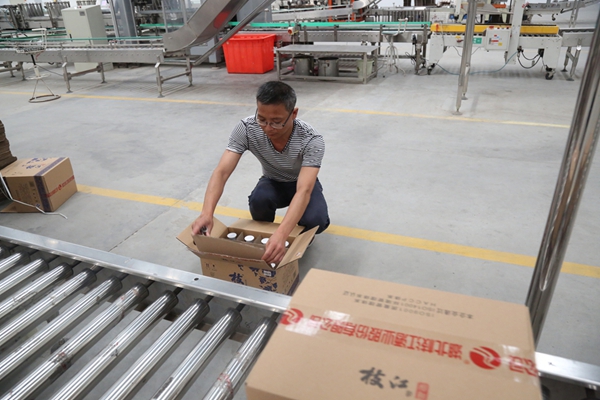 包裝調度安鵬程(右),2011年入黨。“在枝江酒業加入黨組織,一直心懷感恩。”