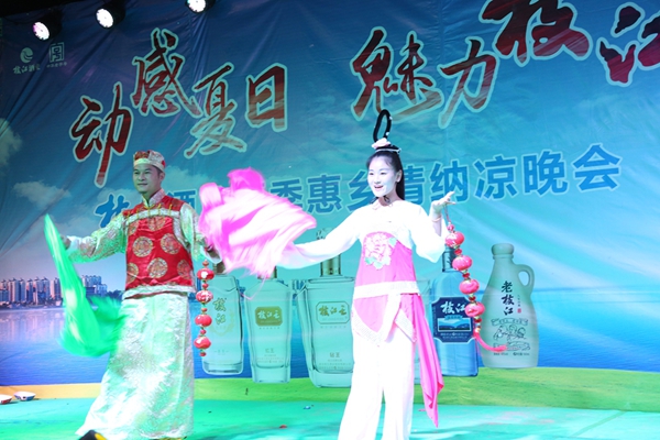 當地老百姓說,便民服務中心廣場建好后,來這里進行商業演出的隊伍一波接一波,大多是一個演出車,三五個人唱戲,像枝江酒業這樣搭建大舞臺,弘揚正能量,注重群眾參與性,宣傳枝江大品牌的演出還是頭一次。