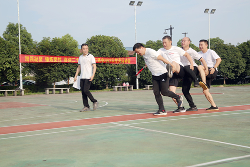 看,那只“袋鼠”,盡管被束縛了雙腿,但絕不能成為速度的阻礙,一步,兩步……,每次起跳,都是朝著勝利發起的號角;兩人腿上綁上繃帶,卻能平穩又敏捷地向前沖,這就是團結的力量,疾踏百步,只為終點一觸; 生產黨支部與經營黨支部的拔河冠軍爭奪賽,更是將整場比賽推上了又一個高潮。場上掌聲、笑聲、加油聲、喝彩聲此起彼伏,精彩紛呈。運動會的順利舉辦,不僅讓黨員同志鍛煉了身體,也增進了支部之間、黨員之間的友誼,更為中國共產黨誕辰101周年獻上了一份特殊賀禮。